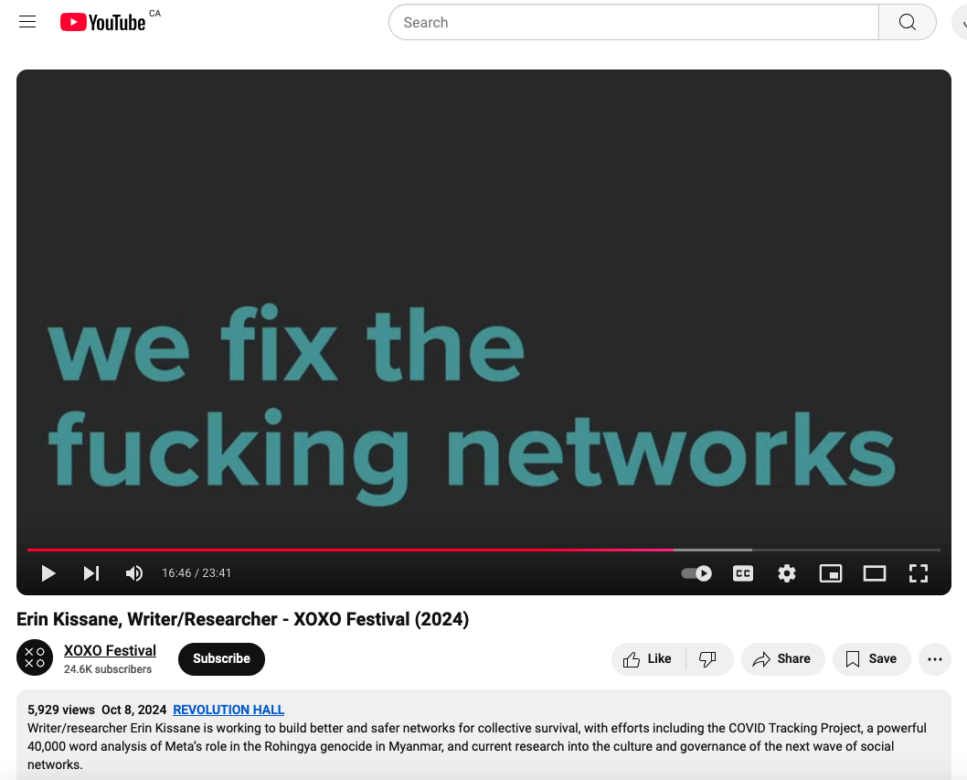 Erin Kissane, in a presentation at XOXO Festival 2024, discusses how Twitter was instrumental in crowd-sourcing a wide variety of experts to understand what was happening early in the Covid pandemic. Twitter enabled many ‘rando’, or loose social connections which resulted in the Covid Tracking Project that was ahead of the CDC and other official sources of public health information. But as Kissane states, “It’s a mark of institutional failure to leave your public health crisis data in the hands of amateurs and volunteers.” That has been the ongoing state of affairs in most Western countries, Canada included.
